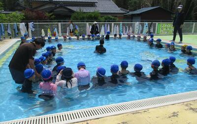 子どもたちが「もっと入っていたいな。」「みんなと泳げて楽しかった!!」など、