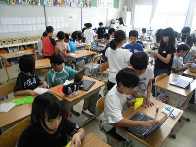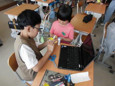6月23日、25日の坂田タイムに、たてわり班に分かれて、七夕かざりを作りました!