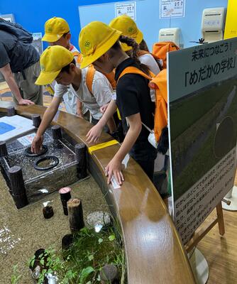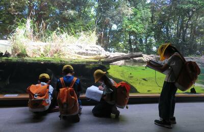 琵琶湖博物館では、びわ湖の歴史や生息している魚や微生物などについて、関心のあることについて見学し、
